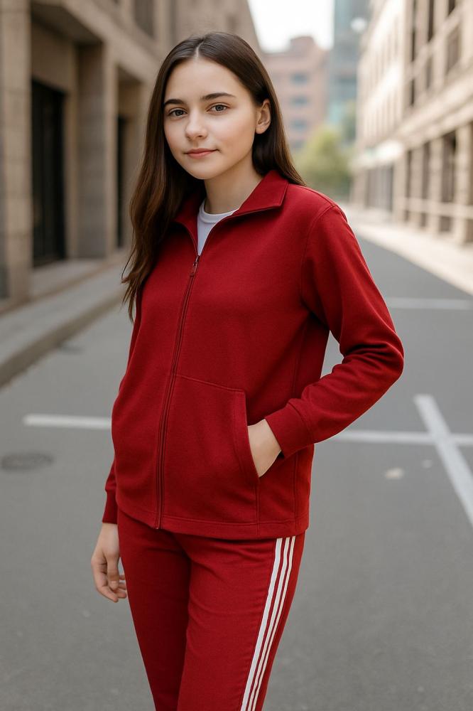 طقم رياضي بناتي أنيق ومتكامل بثلاث قطع، مصمم ليمنح إطلالة عملية بلمسة من الرقي والراحة.